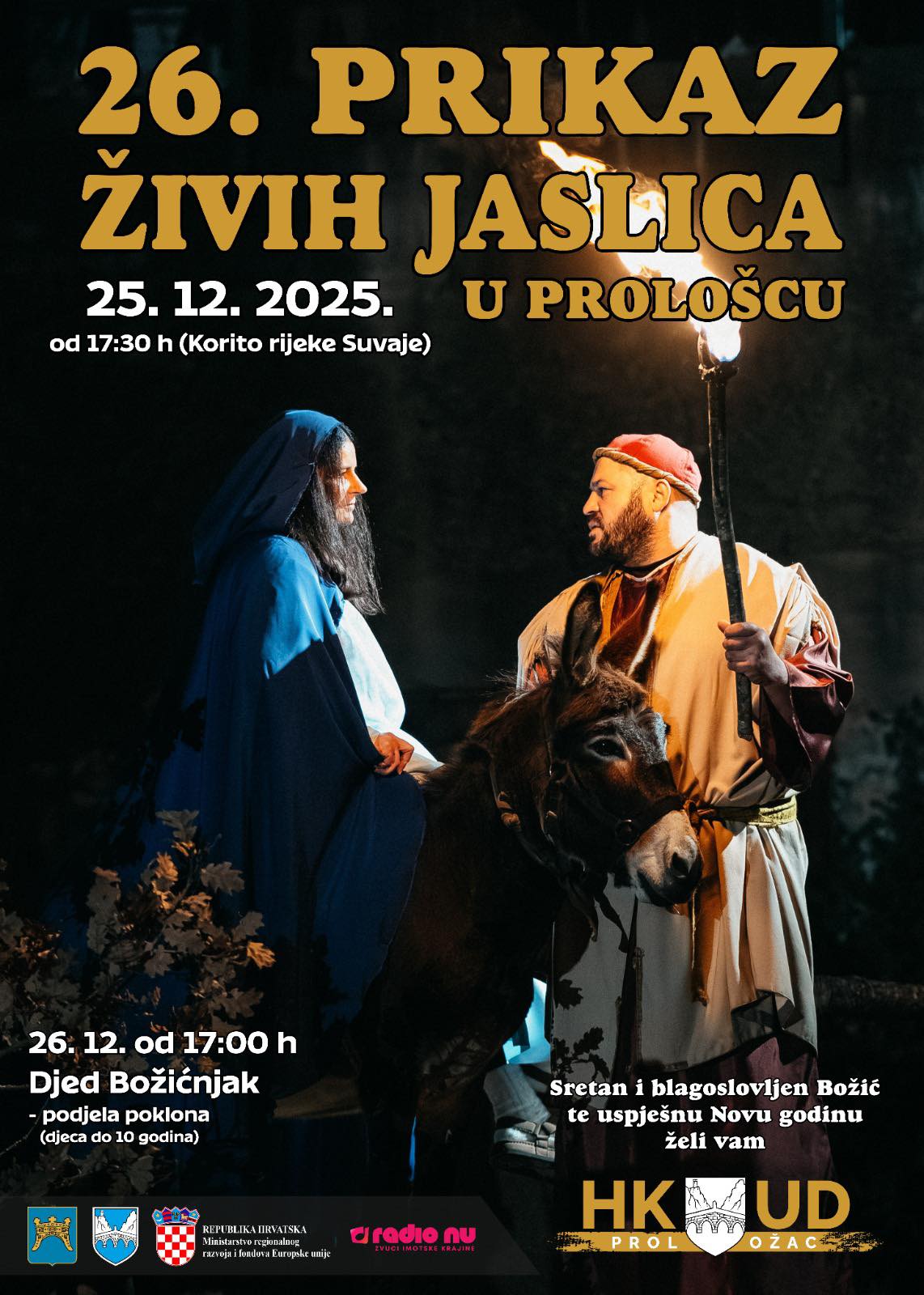 HKUD Proložac i ove godine poziva sve mještane i posjetitelje da zajedno dožive jedan od najsnažnijih i najprepoznatljivijih božićnih događaja Imotske krajine – 26. prikaz Proloških živih jaslica.
